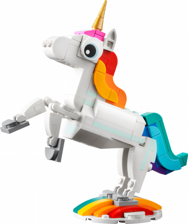 Šis Stebuklingo vienaragio (31140) konstravimo rinkinys „trys viename“ nukels išradingus vaikus nuo 7 metų amžiaus į mitinę žemę, kurioje jų laukia užburiantys nuotykiai. Rinkinį sudaro vienaragis su auksiniu ragu, spalvinga uodega bei lanksčiomis kojomis ir kanopomis. Jį galima pastatyti 2 padėtimis: ant visų 4 kojų arba ant 2 užpakalinių kojų, taip sukuriant legendinę pozą. Vienaragį galima eksponuoti ant vaivorykštės spalvų stovo.