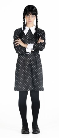 - Rinkinyje yra Wednesday suknelė ir perukas su dviem kasytėmis.